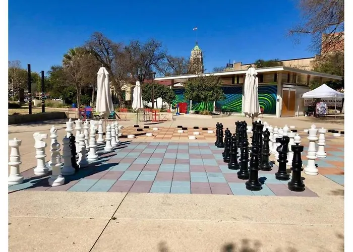 Este apartamento de 28 m^2 está a una distancia de 2 km de la Misión del Álamo y la Torre de las Américas. Hay un parque temático y bodegas a poca distancia del apartamento y el aeropuerto Internacional de San Antonio está a 24 minutos en coche.